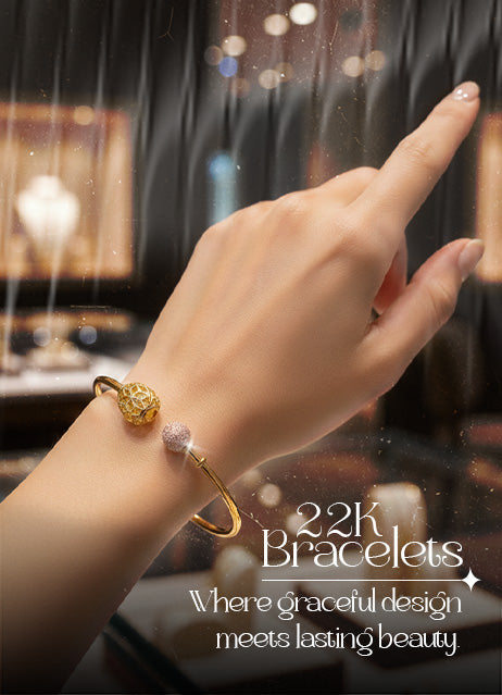 This 22KT gold ring, weighing 2.4 grams, offers a stylish design that complements various fashion choices. The high gold purity...