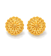 These 22KT gold stud earrings weigh 5.5 grams, offering a durable and elegant accessory. The high purity of 22KT gold ensures a significant hypoallergenic quality, making them suitable for sensitive skin. This combination of weight and material provides a lasting shine and timeless appeal, ideal for both everyday wear and special occasions.