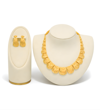 The Necklace Set is crafted from 22KT pure gold, weighing 20.8 grams. This heavy gold composition ensures durability and a luxurious appearance, making it suitable for both formal and casual occasions. Its intrinsic value is supported by the purity of the gold, offering a timeless investment.